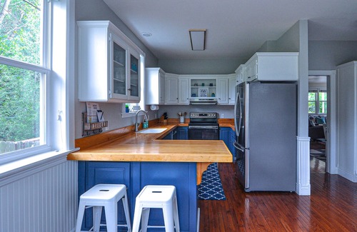 *Fully equipped kitchen with stainless steel appliances, butcher block countertops, and a coffee station (drip, Keurig, French press, and teapot)