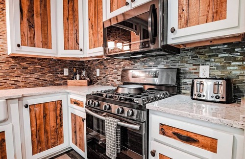 The recently remodeled interior provides plenty of at-home comforts, Smart TVs, board games, darts, or corn hole while sitting at the downstairs bar. The property’s private lot is filled with fun activities to enjoy, like roasting marshmallows or reading a good book in the hammock chair.