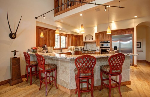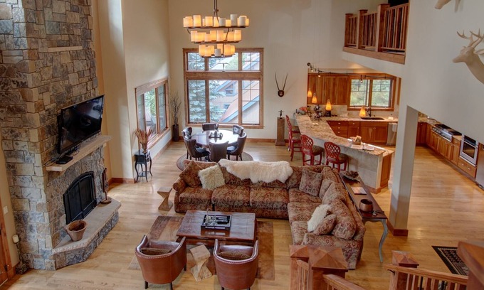At Alpenglow Villa, you’ll enjoy high-end amenities designed with relaxation in mind. Indulge in the private hot tub after a day of festivities, or gather in the media room featuring shuffleboard and a Wii loft for some fun-filled entertainment. The gourmet kitchen is stocked with everything you need to create unforgettable meals, while plush towels, soft sheets, and cozy down comforters promise a restful night's sleep. With a total of 7 flat-panel TVs, you can ensure that everyone stays entertained during downtime.