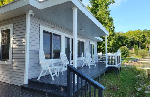 The cottage has been completely renovated over the last few years. It is about 15' off the water.