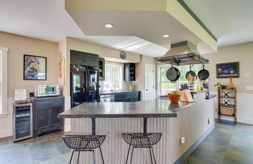 Leave your worries behind and escape to Vermont for a stay at this Hardwick 'Center Farm' home! With 3 bedrooms, 2 baths, and a large yard, this vacation rental has plenty of space for the whole family. Though this house is tucked away from it all in a farming community, the home has high-end amenities like a full chef's kitchen and heated floors. Enjoy proximity to endless outdoor adventures at the Kingdom Trails and Stowe Mountain Resort!