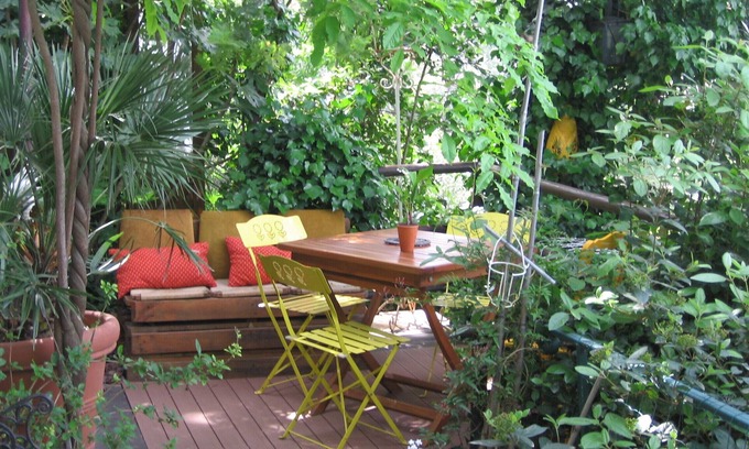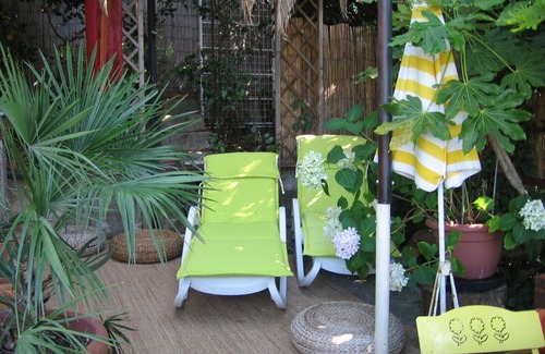 Independent garden and terrace, bbq and deckchairs, at the heart of the Costebelle pine wood hill.