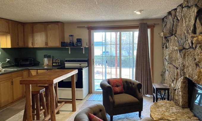 Relax in this haven on the edge of town. Walk around the neighborhood lake or hike the nearby nature areas. Or get to fun Old Town spots in 5 minutes. Get cozy in front of the stone fireplace. Cook delicious meals in the full kitchen. Soak in the clawfoot tub (with shower also). The bedroom is well situated for sleep or lounging on the double day bed, as well as office work at the live edge wood desk. Enjoy other convenient amenities like heating, AC, WiFi, and a washing machine and dryer. A great place to call homebase while you're away, we hope you enjoy your stay.