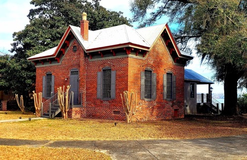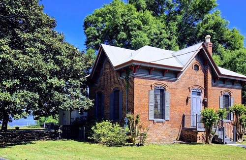 On the lake AND in the heart of Downtown Eufaula. Walk to shops, dining and the Yoholo Micco Trail from this great location. This historic home was built in 1882 and served as Eufaula's original town jail prior to its restoration as a city park and now a residential home. Eufaula's "Old Town Jail" is currently listed on the national register of historic places and is one of many historic structures in the town of Eufaula. Beautifully restored and renovated, the home still contains its original features, but includes all the modern amenities and comforts. You will not find a more fascinating and charming home than this, and the location can't be beat! Two bedrooms and 1 bath with 1200 sq feet of living space. Several boat launches located within minutes, and plenty of room to park your vehicles and boat. Dogs are welcome with a $50 non-refundable pet fee. Providence Canyon, AKA the Little Grand Canyon of Georgia is approx 20 miles away.