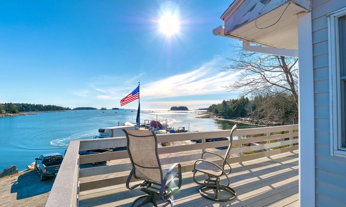 A two bedroom, one bath with access to the ocean in your front yard. Full kitchen with dishwasher. Perfect location for all season. It is situated on a working water front wharf. Watch the fishermen unload their catch for the day. Enjoy fresh lobsters on your deck over looking Wheelers Bay.
