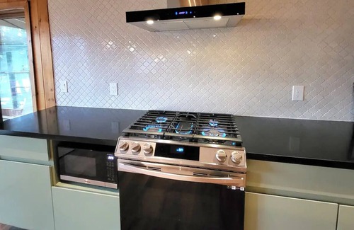 The very spacious backyard has enough space for all of your favorite summer activities, a volleyball/badminton net, coquette set, baseball glove and balls, soccer, basketball are located in the shed for you to use and enjoy during your stay.