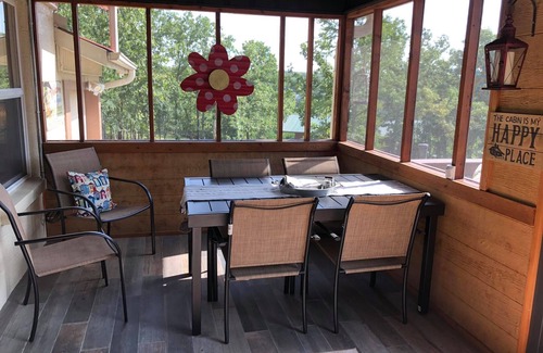 Cozy cabin getaway on Lake Tenkiller in the Chicken Creek Neighborhood. 2 bedrooms with queen beds and a queen sleeper sofa, 1 bath. Screened in porch that seats eight. Washer and dryer on premises. Two boat ramps in neighborhood, close to Six Shooters and Cookson Bend Marinas for boat and boat slip rentals.