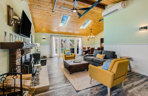 - Beautiful lodge on creek, full bath, AC, WiFi, many amenities! Hot tub views!