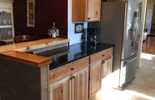 This home is located on a mountain gravel road. If hiking is your thing, the road itself provides a great hiking trail with lovely mountain views. Horseback riding is available just 10 minutes away. Spend your evenings around the large fire pit and enjoy the amazing star show after dark. The beautiful screened deck provides a great place to sit, relax, and enjoy the scenery no matter the weather or season.