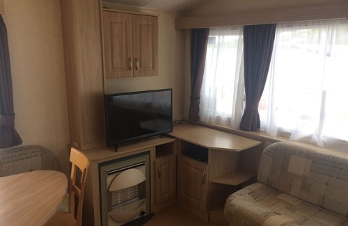 The static caravan is located in a campsite by the sea, with 1 space for 1 vehicle and with sun terrace. The living room is spacious and bright and has a gas fire, digital TV. There is also a dining table with seating for 6. The kitchen is equipped with a gas stove, grill, microwave and fridge / freezer, kettle, toaster. There is a double bedroom, a twin bedroom. All bedrooms have wardrobes or wardrobes. Duvets, sheets and pillows are provided. Towels are not provided. The caravan has a shower room with toilet. Electricity, water and gas is included in the price.