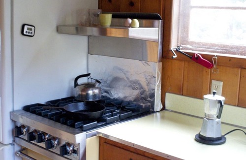 The midcentury decor is updated with new appliances, central AC, remodeled bathroom with walk-in shower, new beds and bedding, and fast internet. Single-level, one step up to enter the cabin.