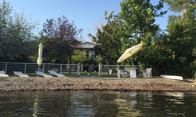 Literally built on the waterfront, in Paralia Politikon (Politika beach), which is in the island of Evia, this house offers the most unique feeling one can ask on his vacation: a private beach!