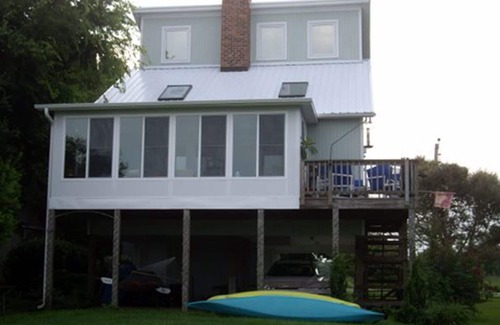 Sleeping arrangements are queen bed in bedroom, queen sofa bed in den, one full bath upstairs and half bath downstairs. Refrigerator in room, access and use of sunporch, deck, hammock, hottub, dock and kayaks.