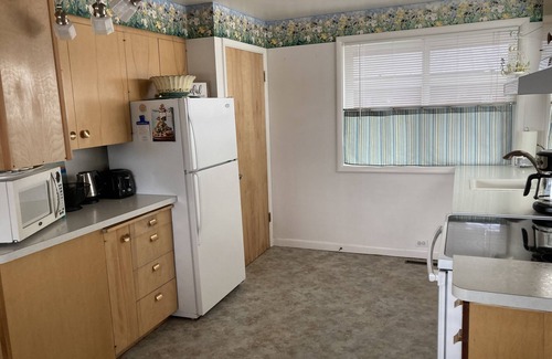 When not exploring the Flathead Valley's stunning beauty and friendly people, you will feel quite at home relaxing on the patio among the towering blue spruce trees that define this "once in the country" home. Reviews from guests reflect on the peaceful quiet and comfort of this well-cared-for home featuring two bedrooms, each with queen beds, and the larger bedroom including a set of twin bunk beds. The spacious bathroom is completely updated with new everything! Additionally, a half-bath has been recently added making larger gatherings even more comfortable. A large, relaxed living area includes TV, WiFi, and various streaming options. Kitchen comes complete with all large appliances including dishwasher and microwave as well as small appliances including coffee-maker, hot pot, pancake griddle and toaster. Whether packing for a picnic or full meal prep, you will find the vintage-original cupboards contain the tools you need. Washer and dryer included, along with a drying rack and ironing board! Beach towels are available for enjoying summer in the Flathead. A cool basement family room adds refreshment at day's end, complete with TV, Foosball, and comfy furniture on which to stretch out and relax.