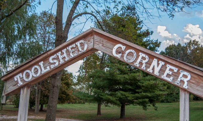 The Toolshed Corner House and Cabin is located on the Shawnee Hills Wine Trail and only minutes from Giant City State Park, Ferne Clyff State Park, and Lake of Egypt. Five Bedrooms (1K & 4Q) with a 3 fold out queen couches to sleep 16. IF you would like to accomodate more I have a few air mattresses that can be used. Sit on the porch and enjoy the 180 degree view or the surrounding hills and bluffs.