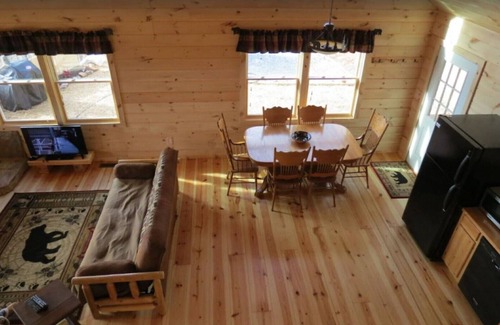 If you want a private cabin away from the crowd then this is it!! This cabin is tucked up in the Majestic Cowee Mountain Range with a stunning view of the Nantahala Mountains and you are completely surrounded by the Smokey mountains! This cabin is new, trimmed out with seven different species of wood. Custom built cabin especially for a mountain rental! It has two bedrooms with queen beds and a full bathroom downstairs, and with two full beds and a half bath upstairs in the loft. Custom kitchen with cypress cabinets. Most of the furniture and beds are handmade! Franklin is just 5 miles away. Endless miles of hiking, waterfalls, river rafting, and gem mining are minutes away. We even have "pickin on the square" every Saturday night in Downtown Franklin starting in May. This cabin is convenient to Dillard, Ga where there is a new business, Julep Farms, which has shopping, dining, and flowers to pick during the summer! There are a variety of animals to see that the kids will love! We are also very close to Clayton, Ga. This little town has wonderful shopping as well as farm to table restaurants. It’s a great place to spend a day!! The road leading to Highlands, NC is not too far either!! There are waterfalls and hiking trails off this road that are gorgeous!! We invite you to our cabin and hope you will enjoy your visit!! ( No motorcycles please)