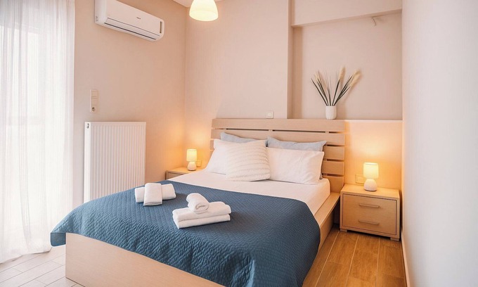 Enjoy a peaceful stay at this spacious 1-bedroom apartment in Loutraki. This cozy space features a living room with a sofa bed too, perfect for relaxing after a day of exploring. With amenities like a hairdryer, AC, and heating, guests will feel right at home. With free parking for your car and two big balconies, one of them with sea view, your stay will be comfortable and joyful. Feel free to reach out to us during your stay - we're happy to suggest local spots to check out.