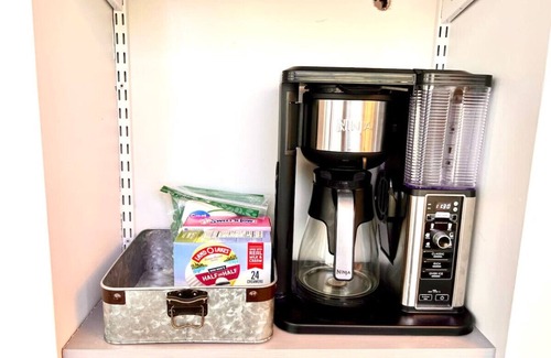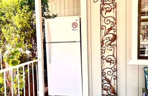 An upgraded, stylish and comfy space that comes with lots of windows and scenic view of an historic 1800's cottage. Along with and outdoor conceptual living space, kitchenette and grape vines hanging on the deck.