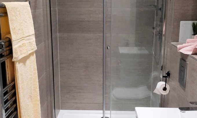 One bedroom, a flat-screen TV with Netflix, Amazon Prime, YouTube and all the exiting entertainment channels, a fully furnished kitchen with a dishwasher ,microwave, a washing machine,Working area and one bathroom with a shower are all included in the apartment. There are towels and bed linen available.