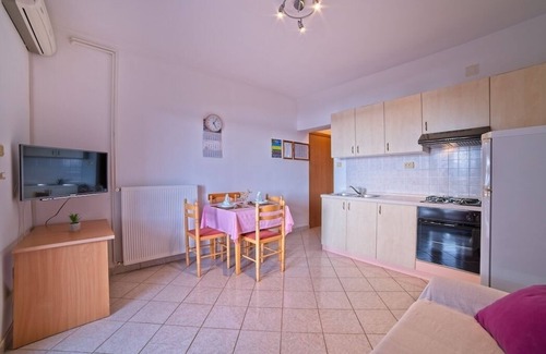 Apartment can accommodate 4 guests. Beds are situated in 1 sleeping rooms, but also in the living room, within 30m2. Guests can use a private balcony to enjoy the warm summer evenings. The apartment offers the sea view. Food can be prepared using barbecue which is shared with other guests too. This accommodation unit welcomes pets at an additional charge.