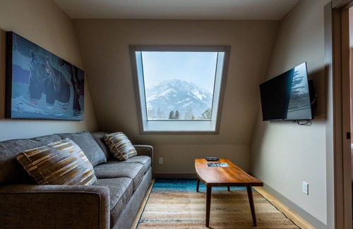 Our One Bedroom Apartments are 305 square feet and accommodate two guests with one queen bed. Basecamp Suites Banff, our newest and most exclusive property, located just off the world famous Banff Avenue, offers guests a uniquely private and relaxing environment to unwind, along with convenient access to all of the shopping. This unit also included a fully equipped kitchen and amazing Mountain views.