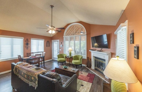 This charming one-bedroom, one-bath condo offers beautiful water views overlooking the bay and features all-new décor, warm colors, and stylish furnishings throughout. The bedroom includes a king-size bed, while the living area provides a cozy fireplace and a full-size pullout sofa for additional sleeping space. Guests will enjoy two flat-panel TVs with DVD players, a newly built screened-in porch perfect for relaxing, and close proximity to the lake, two outdoor pools, a playground, and boat rentals. This bright and inviting condo is strictly non-smoking and does not allow pets, making it a fresh and comfortable retreat.