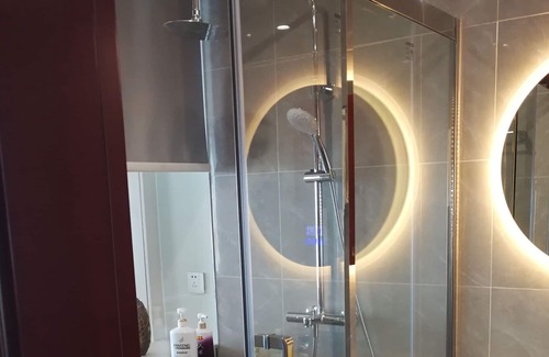 This condo layout and furnishing was designed carefully using the unique dimensions of the apartment and includes many American decorative features. Some of the key appliances include: (1) a large 65 inch TV with a retractable and movable bracket; and (2) a combination washer and dryer. You will be able to check-in with smart lock.