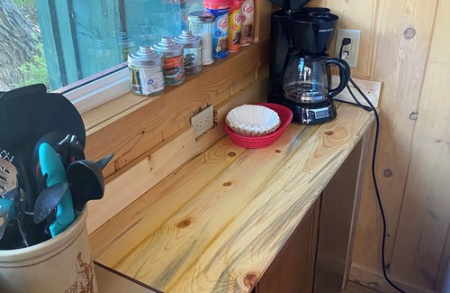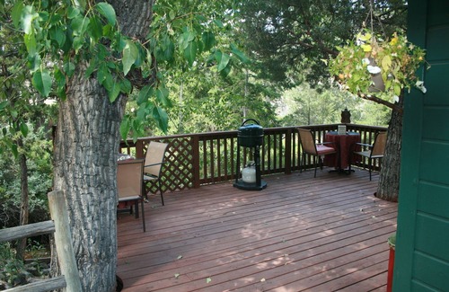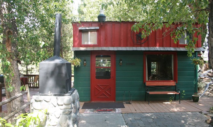 An adorable Red and Green Bunkhouse nestled inside Wapiti Valley. The Bunkhouse has a large private deck overlooking a small water fall that run through out the year. This adorable cabin comes with a BBQ grill, shower, bathroom and kitchenette. Wireless access and Direct TV are available. There is a one bedroom with a double bed that sleeps two comfortably. Across the street from the cabin go and explore the Indian Petroglyphs. The cabin is located 28 miles from the East Entrance of Yellowstone National Park, and 22 miles from the small western town of Cody. While visiting the area you may want to go white water rafting, fishing, hunting, cross country snow skiing, ride snow mobiles, hike, visit Buffalo Bills Museum, Cody Stampede Rodeo (nightly June through Early September), Yellowstone NP (open April-October), and much, much more. Enjoy a night by the creekside fire pit, roasting marshmallows. Come make memories to last a life time.