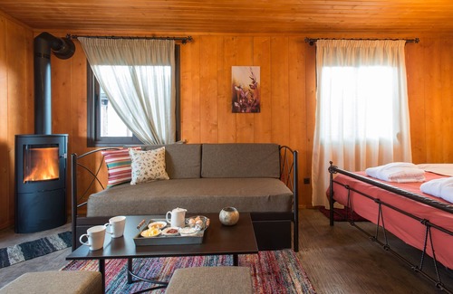 Our One Bedroom Mountain Bungalow is a spacious wooden Bungalow of 35 square meters Consists of one bedroom with a double bed and a living room with a sofa bed. The room can host up to 4 guests.