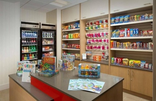 Complimentary grocery delivery services are offered, and 675 square feet of meeting space is available.