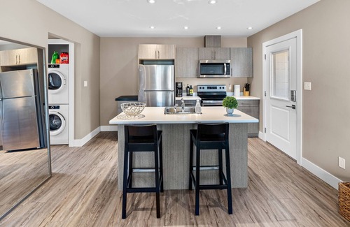 This modern suite is the perfect space for your medium to long term stays. You will be staying in a spacious and stylish suite above the garage in a residential neighborhood.