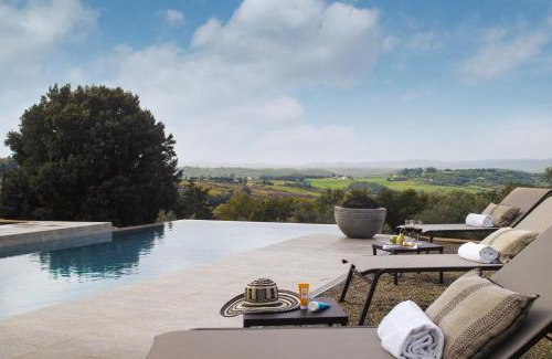 Offering garden views, One Belvedere Tuscany in Poggibonsi features accommodations, an infinity pool, a fitness center, an open-air bath, a tennis court, and a terrace. Built in 2021, the property includes steam room and public bath. The farm stay also offers free Wifi, free private parking, and facilities for disabled guests. The farm stay will provide guests with air-conditioned units offering a wardrobe, a safety deposit box, a flat-screen TV, and a private bathroom with a bidet. At the farm stay, all units are soundproof. At the farm stay, the units come with bed linen and towels. Guests may eat at the on-site traditional restaurant, which is open for dinner, lunch, and brunch. The farm stay offers a variety of wellness options, including a sauna, a spa facilities, and yoga classes. Bike rental and car rental are available at this farm stay, and the area is popular for cycling. Guests can also relax in the shared lounge area. Piazza Matteotti is 17 miles from the farm stay, while Piazza del Campo is 18 miles from the property. Florence Airport is 34 miles away, and the property offers a paid airport shuttle service.