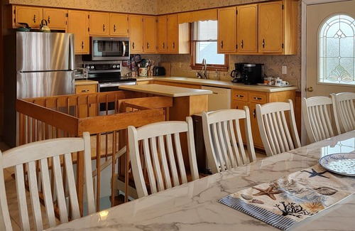 If you are planning a wedding stay, look no further than One Block to Beach with no steps to enter, 7 BR, and waterfront enclosed deck. This spacious property offers ample comfort and convenience for large families or wedding parties.