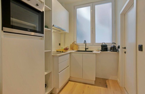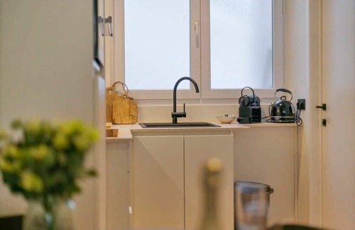 Step into this charming studio in Antwerp, an ideal retreat for those seeking a blend of convenience and style. This thoughtfully designed space, perfect for two guests, offers a unique living experience in a compact yet elegant setting. The centerpiece of the studio is a versatile sofa that easily transforms into a comfortable bed, ensuring a restful night's sleep. This multifunctional room seamlessly adapts to your needs, whether for relaxation or sleep.