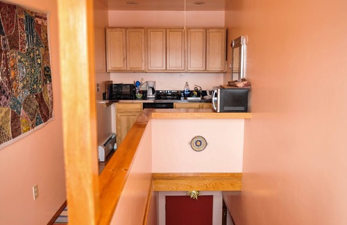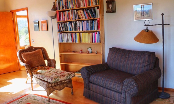 This is one out of three rentable units under the same roof. You'll need to climb a flight of stairs to access it. The Heart and Wings Retreat Center offers easy access to downtown Silver City and the Gila forest. This serene getaway is five minutes from the highway and ten minutes from the center of town. You can hike or bike straight out of the house, or drive ten minutes to the Continental Divide Trail.