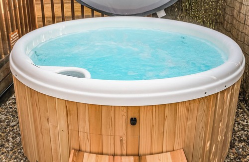 One double with en suite shower and one twin. Bath. Open plan lounge/kitchen/dining area. Double doors leading to decking. Outdoor hot tub.