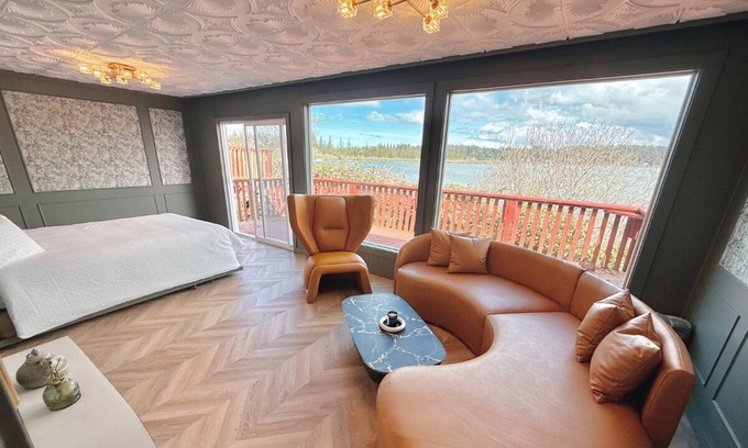 - Unique lakefront cabin near the dunes with a private dock & fireplace