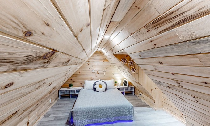 Step inside the unique garage/shop space and discover a home movie theater, indoor basketball court, pool table, and a full chef's kitchen to delight any culinary enthusiast. The loft bedroom adds a touch of charm. The main house also has a quaint eat-in kitchen to provide a cozy setting for family meals. With a range of amenities, including an outdoor grill and cozy fireplace, this home ensures a comfortable and enjoyable stay for all ages.