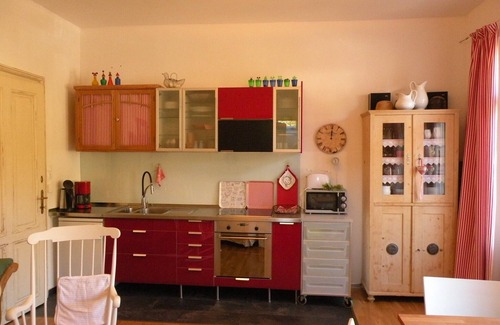 The holiday domicile is located on the second floor of the house. It consists of a small entrance area, a kitchen/living room, 2 bedrooms and a bathroom.The recent renovation has provided the apartment with all of today’s comforts while still preserving its historic charm. (The villa is a registered historic building.) The result offers the romance of stepping back in time but still feeling right at home.