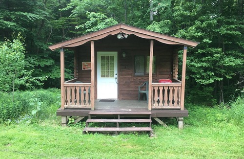 Enjoy a peaceful retreat in this private 1-Room Log Cabin. The cabin has a full size bed, bunk beds, a mini-fridge, microwave and hot water kettle. Enjoy listening to the owls, frogs and coyotes in the evening sitting by your campfire or on your porch. howers and compost toilets (clean and odor free) are a short walk from the cabin to main camp. Twenty plus miles of hiking and mountain biking trails! Just 12 miles from Ithaca, NY, Home of waterfalls and gorges. This is an alcohol and drug free facility. Checking in is between 4 and 8pm. Campground closes at 8pm.
