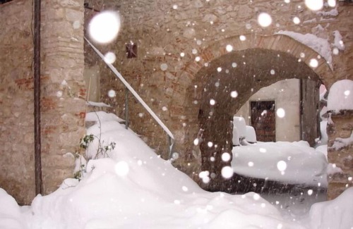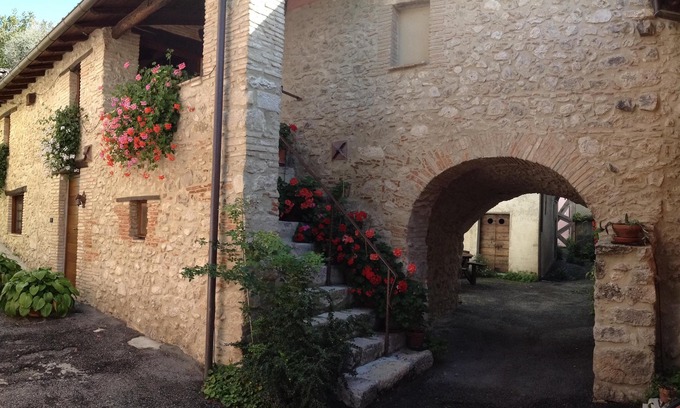 Completely immersed in the tranquility of the Abruzzo mountain panorama, a few kilometers from L'Aquila, located in the center of a small village among ancient houses, barns and barns, the apartment has been finely renovated and furnished with traditional wooden and wrought iron furniture but equipped with all services such as satellite TV and wi-fi.