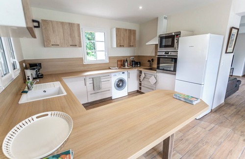 One-story house in a forest park on the shore of the lake, ocean 8 km away is located in Aureilhan. One-story house in a forest park on the shore of the lake, ocean 8 km away provides accommodation, featuring Kitchen, Air Conditioner, Ocean View, among other amenities. This House features Kitchen, Air Conditioner, Ocean View, to make your stay a comfortable one.