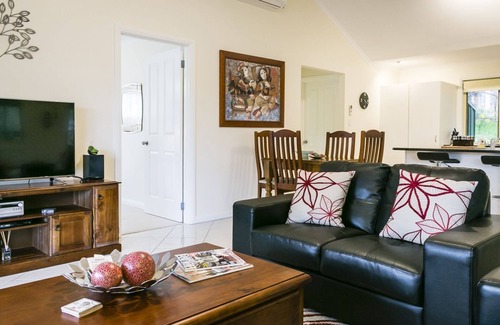 One Tree Accommodation: The Retreat is designed to cater to a stay that is full of relaxation. Features include the king-size bed (Bedroom 1), luxury organic bamboo/cotton linen, towels and bathrobes, slippers, Sukin products, comfortable couches, wall-mounted LCD/LED TVs in the lounge room and both bedrooms, full kitchen with dishwasher, cooktop, oven, microwave, and other energy-efficient appliances, Nespresso coffee machine (and capsules), gorgeous bathroom with indoor jet spa bath - every effort has been made to enable our guests a comfortable and memorable stay.