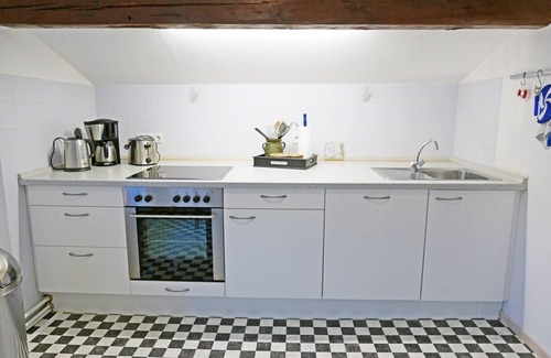 You can park your car in the courtyard in front of the house and bicycles brought along can also be safely stored in the lockable garage (for shared use with the apartment on the ground floor).