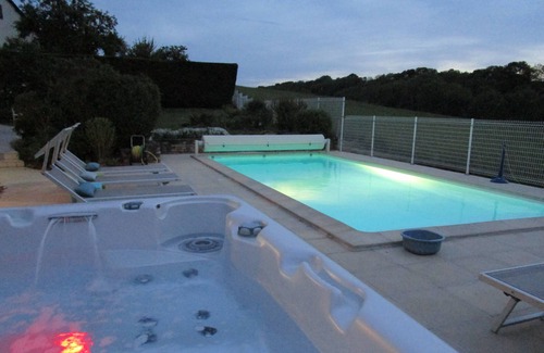 Very appreciated also the sheltered terrace heated with the demand, with barbecue and summer kitchen, opening on the swimming pool and the jacuzzi. The price week and W-E is indicated for 15 people (maximum to sleep, according to the fire safety legislation). If you are more numerous, for the night, a small cottage near can accommodate 2 to 4 people, with supplement.