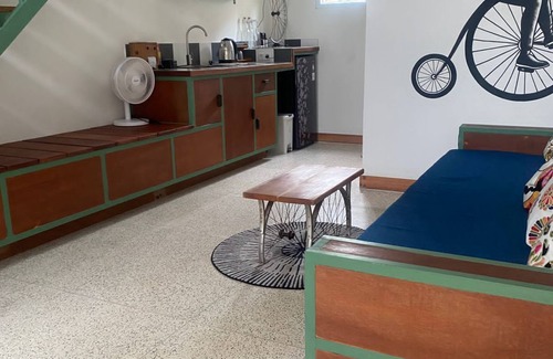 A classic accommodation with an old-fashioned bicycle feel with a unique miniature in the corner of the room, with a hanging lazy net to pamper your every vacation, and a 1 minute walk to the harbor, with restaurants around it.