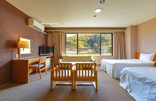 Ooedo Onsen Monogatari Shinshu Kakeyu offers 78 air-conditioned accommodations with slippers and hair dryers. 32-inch flat-screen televisions come with digital channels. Bathrooms include separate bathtubs and showers. Housekeeping is provided daily.
