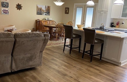 Open concept living room and kitchen for easy conversation. Fully equipped kitchen. Minutes from downtown Puyallup. Central location for many destinations.