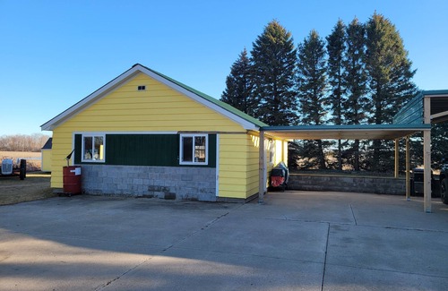 Beautifully open, spaciousness, quiet landscape with a serene atmosphere. Wood blinds for darkness at nite, fire pit. Centrally-located from Port Austin, Caseville, Bad Axe, Pigeon! Beaches 20 min away. Host on site. Open Year Around!!