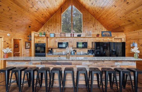 Conveniently located just off Highway 321 in Black Bear Falls Resort, this cabin is a stone's throw from downtown Gatlinburg and Pigeon Forge. You and your guests will have easy access to popular attractions like Dollywood and the beautiful trails of the Smoky Mountains National Park. Enjoy local culinary delights, shopping, and live shows just minutes away, making this location perfect not only for your wedding but for creating lasting memories with loved ones. Book your stay at NO HURRICANE DAMAGE - 8 Bedrooms 8 Baths Ensuites Double Kitchen for a flawless wedding experience in the heart of the mountains.